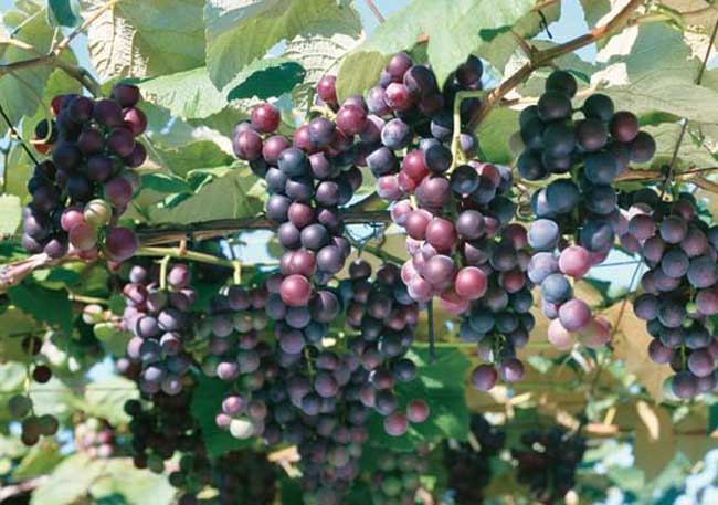2、豐產(chǎn)性強。夏黑葡萄花芽分化好而穩(wěn)定。芽眼萌發(fā)率85%以上。每個結(jié)果新梢平均1.5個果穗。第1年建園, 第2年即可投產(chǎn), 每公頃最高產(chǎn)量可達(dá)33750公斤。