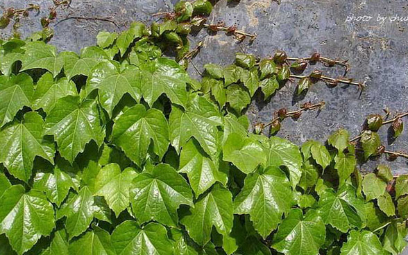 2、爬山虎:爬山虎適應(yīng)性強,性喜陰濕環(huán)境,但不怕強光,耐寒,耐旱,耐貧瘠,氣候適應(yīng)性廣泛,在暖溫帶以南冬季也可以保持半常綠或常綠狀態(tài),耐修剪,怕積水,對土壤要求不嚴(yán),陰濕環(huán)境或向陽處,均能茁壯生長,但在陰濕、肥沃的土壤中生長最佳,對二氧化硫和氯化氫等有害氣體有較強的抗性,對空氣中的灰塵有吸附能力。