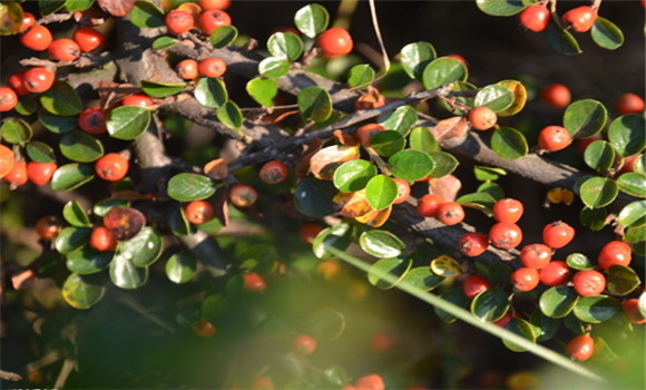 生長習(xí)性:平枝栒子是落葉或半常綠匍匐灌木,枝水平張開成整齊2列,宛如蜈蚣。葉近圓形或至倒卵形,長5~14mm,先端急尖,基部廣楔形,表面暗綠色,無毛,背面疏生平貼細(xì)毛。喜陽光和溫暖的環(huán)境。稍耐寒。耐瘠薄,適應(yīng)性強(qiáng),耐修剪,萌發(fā)力強(qiáng)。
